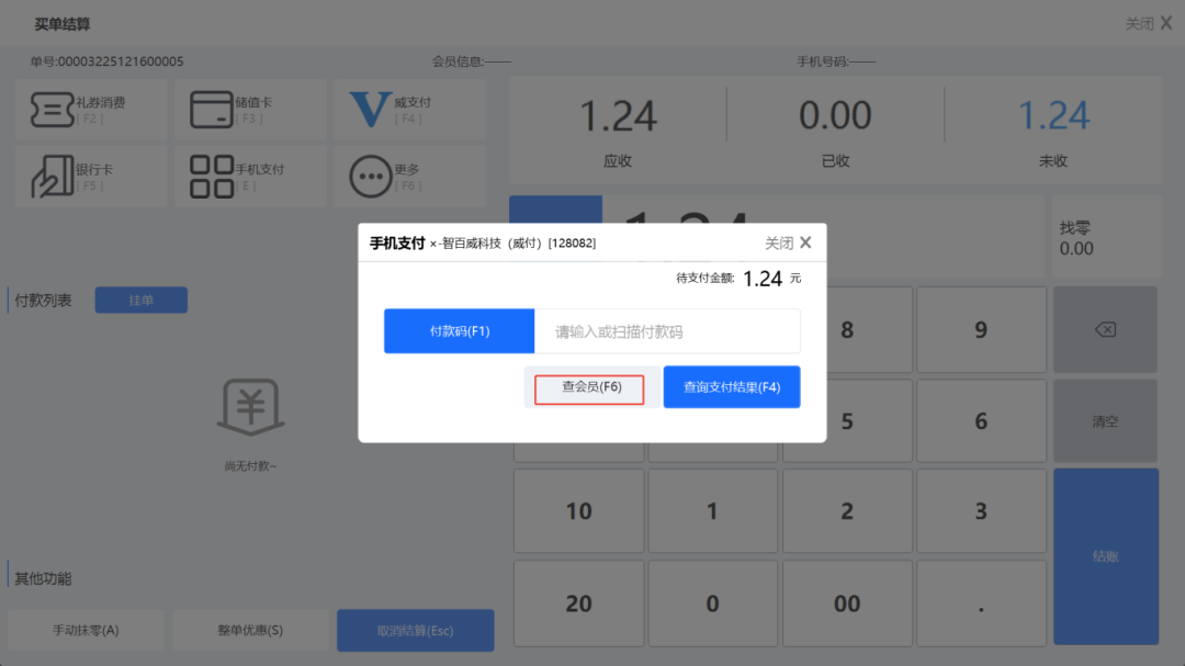 第三方支付界面新增「查会员」功能