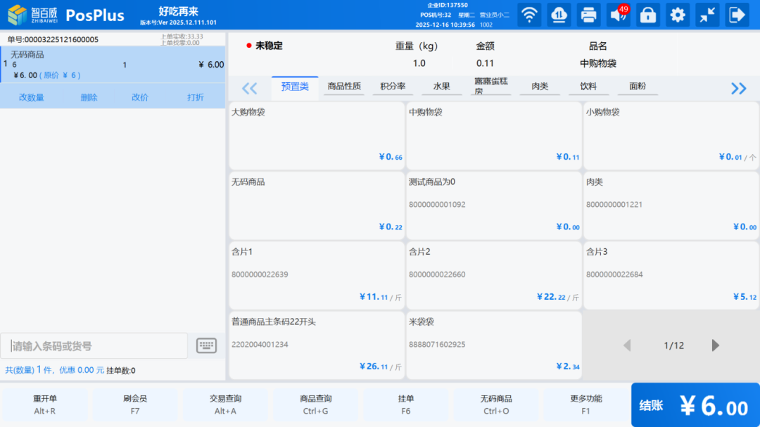 开启后,在销售界面,称重商品、计份商品等将有特殊标识显示,帮助收银员快速识别商品类型,避免操作错误。