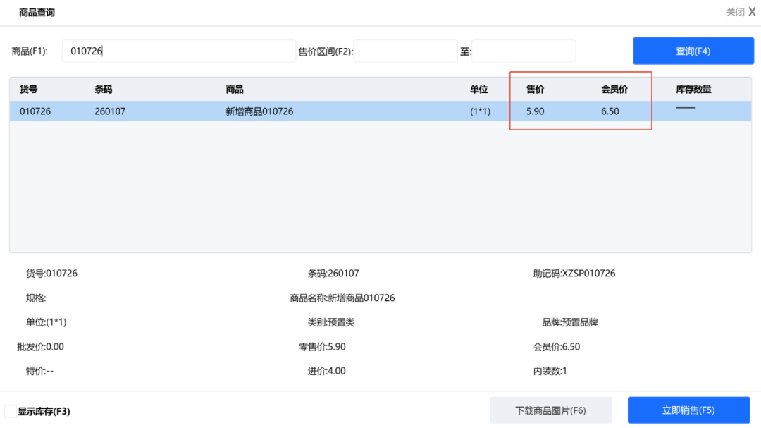 当后台开启此参数后,前台刷会员卡销售特定商品时,系统将准确取用设定的会员价(即使高于零售价),满足特殊的会员分级定价或营销活动需求。